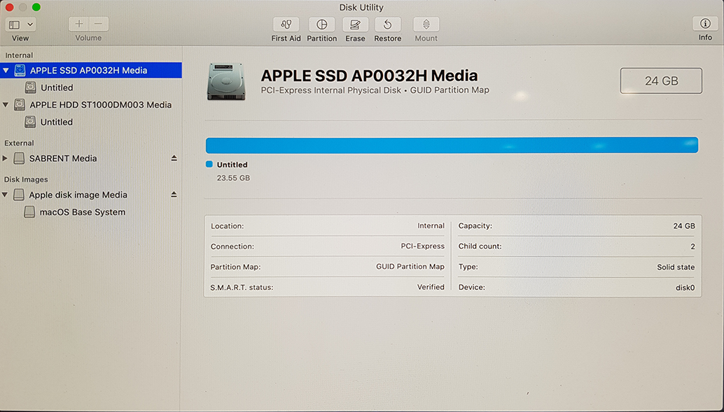 이렇게 하면 퓨전 드라이브가 해제되어 2개의 디스크로 분리된다.