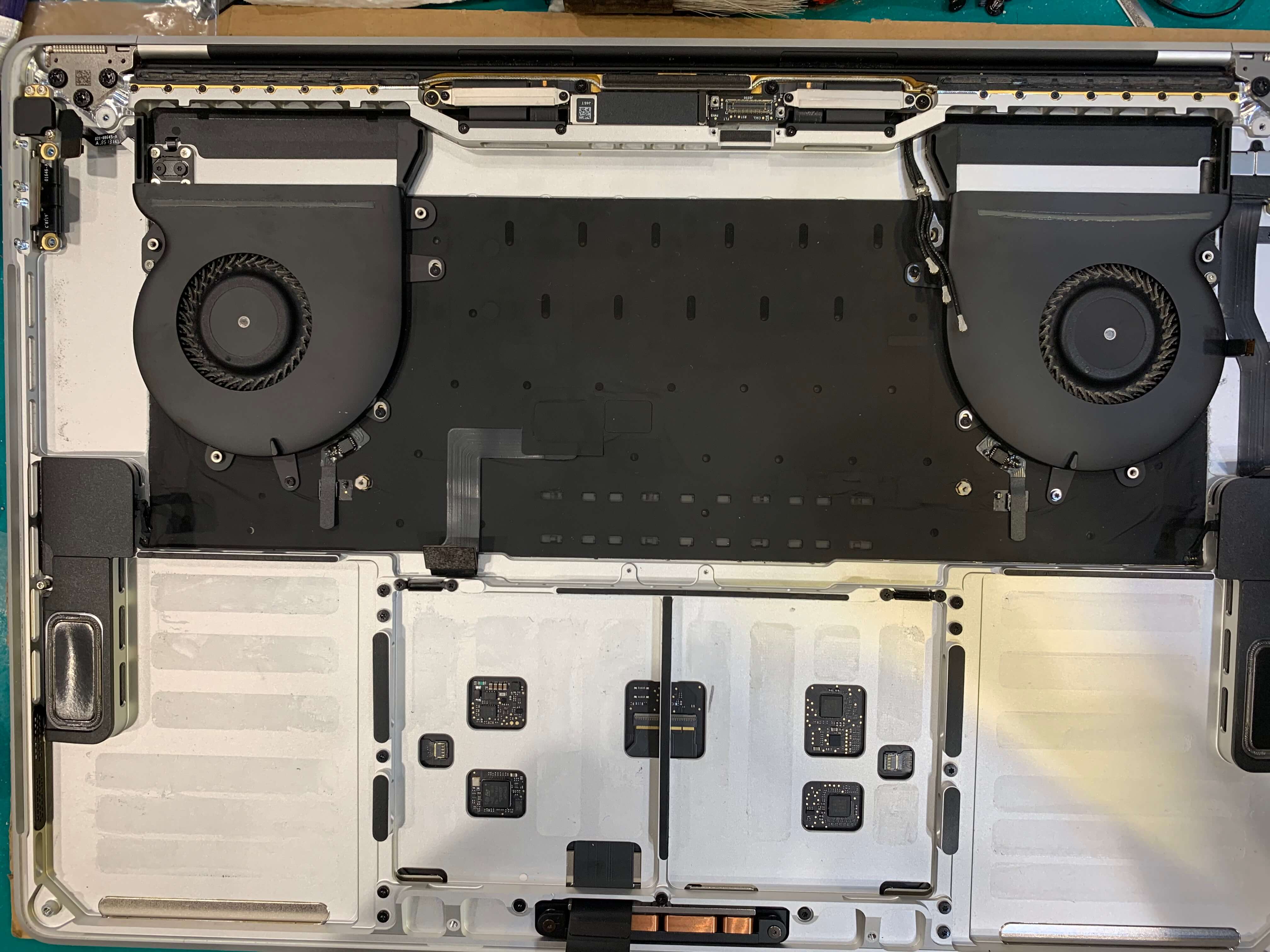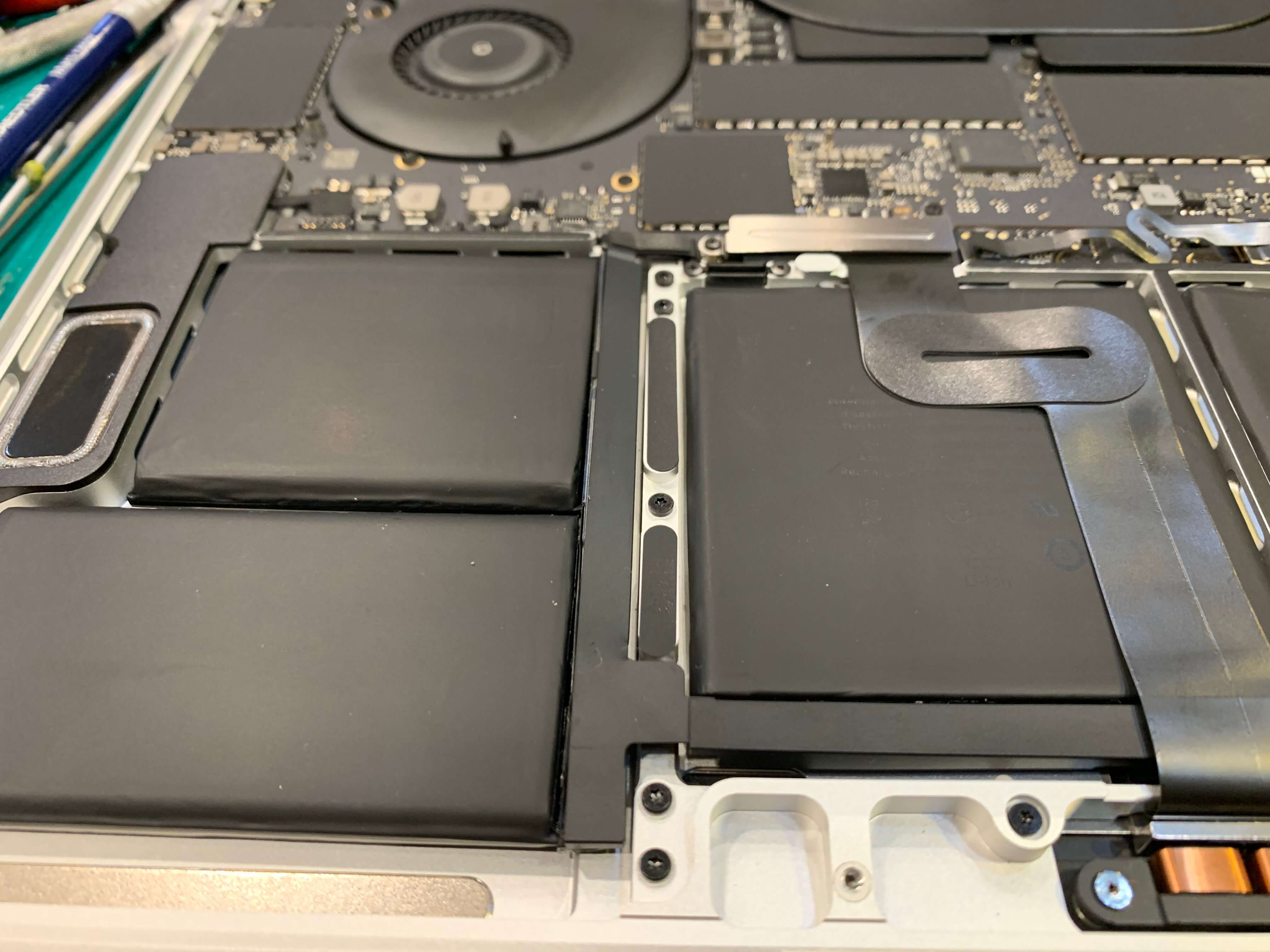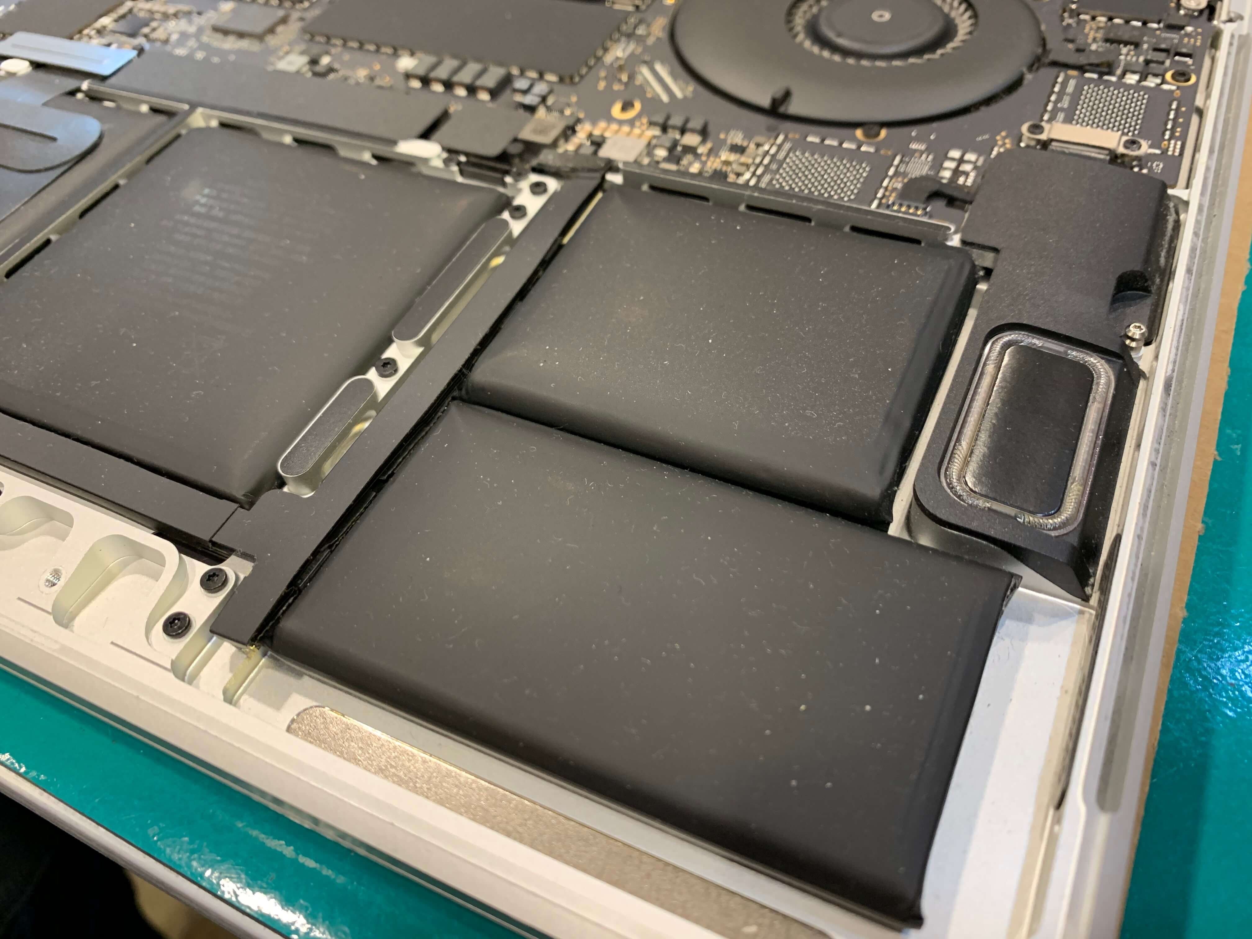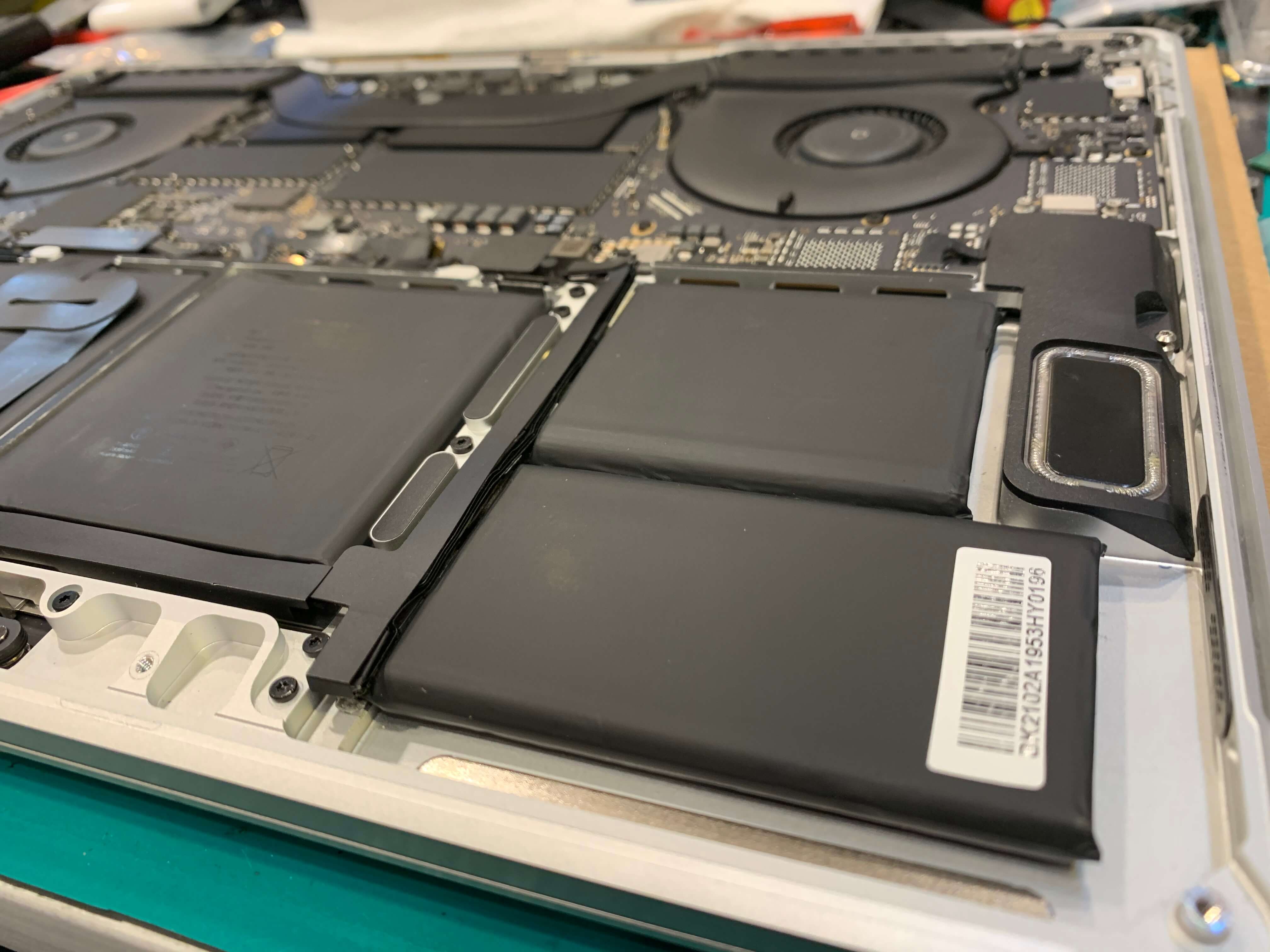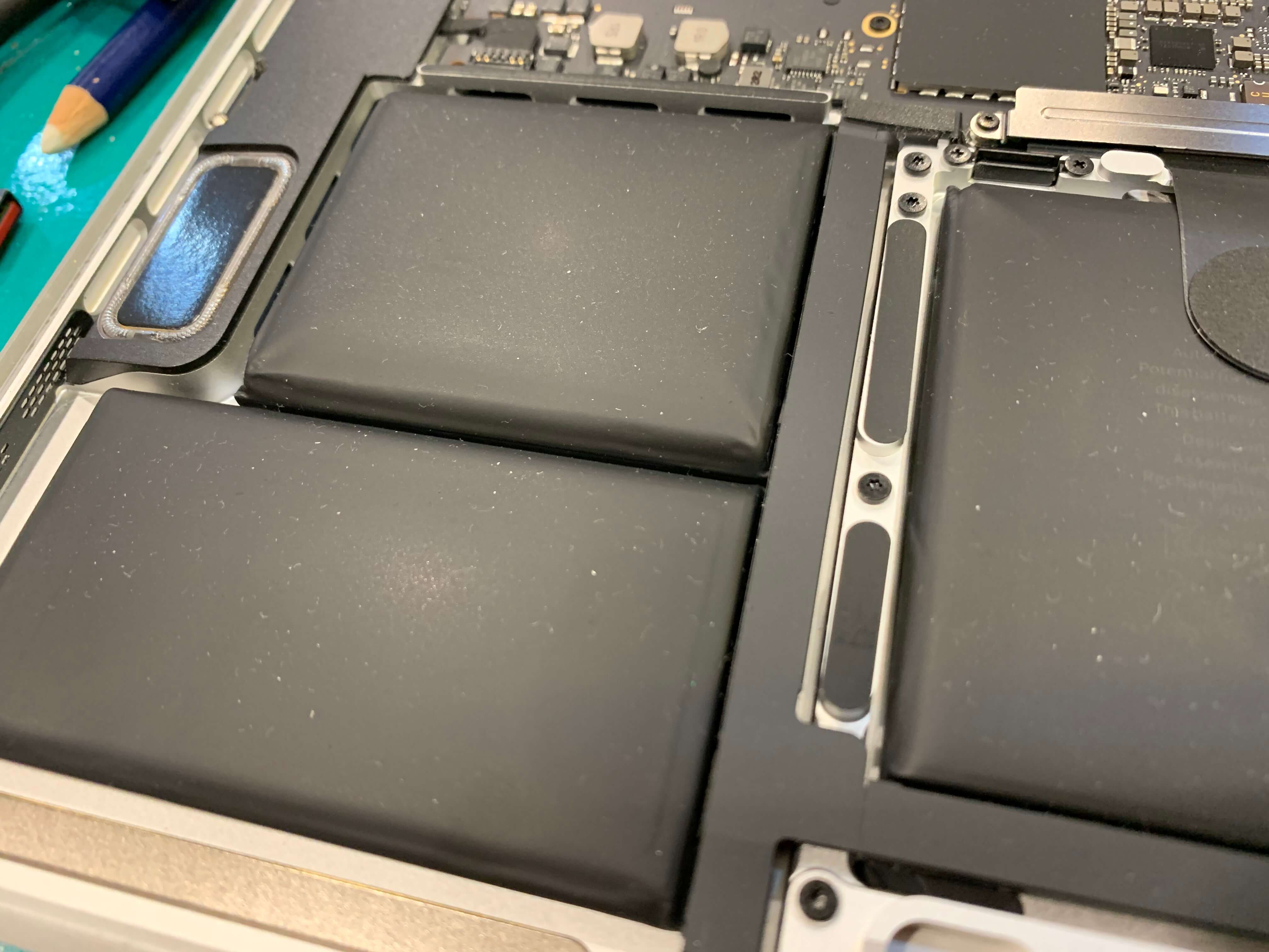 맥북 배터리 교체를 위해서 로직보드, 배터리를 모두 제거한 상태 입니다.