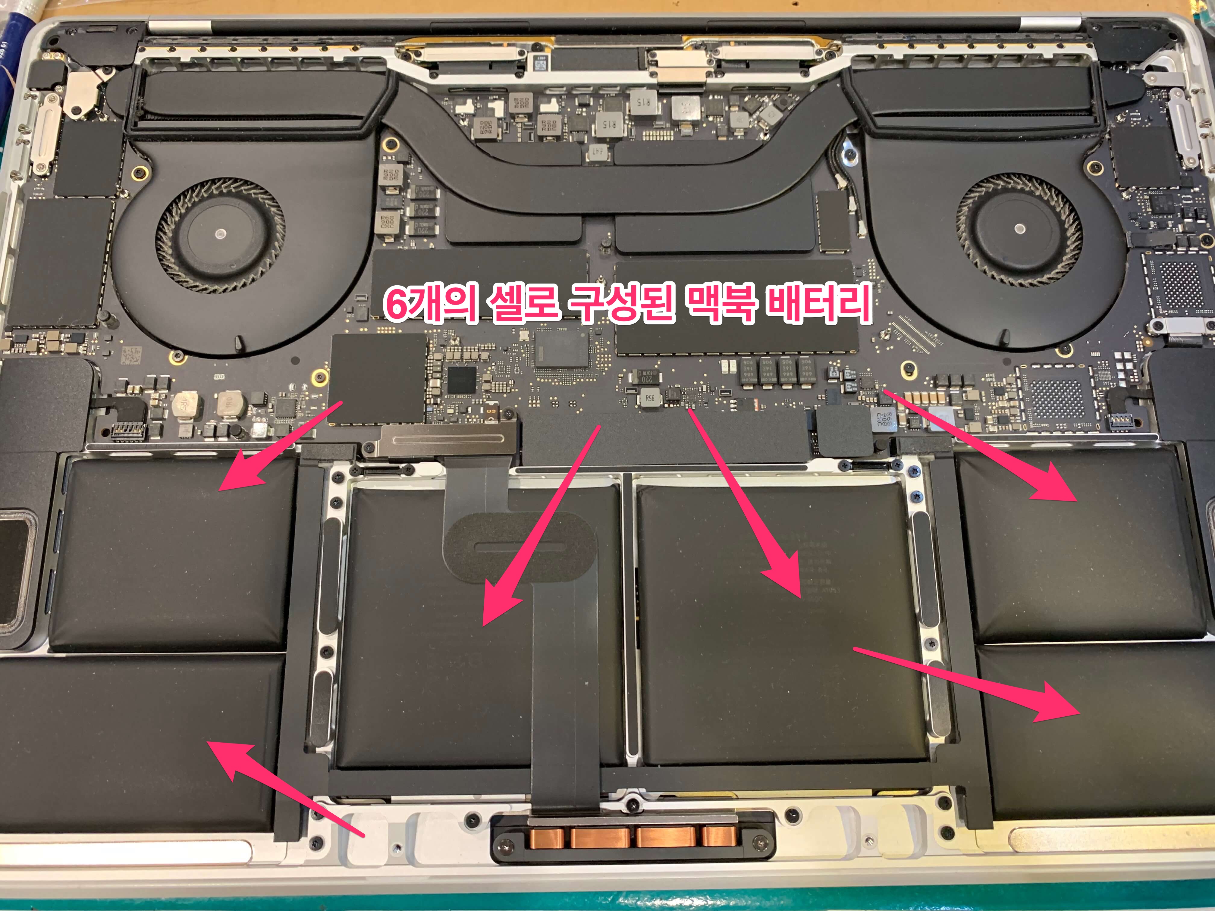 - 맥북의 배터리는 6개의 셀로 연결된 구조로 되어 있습니다.