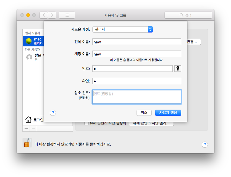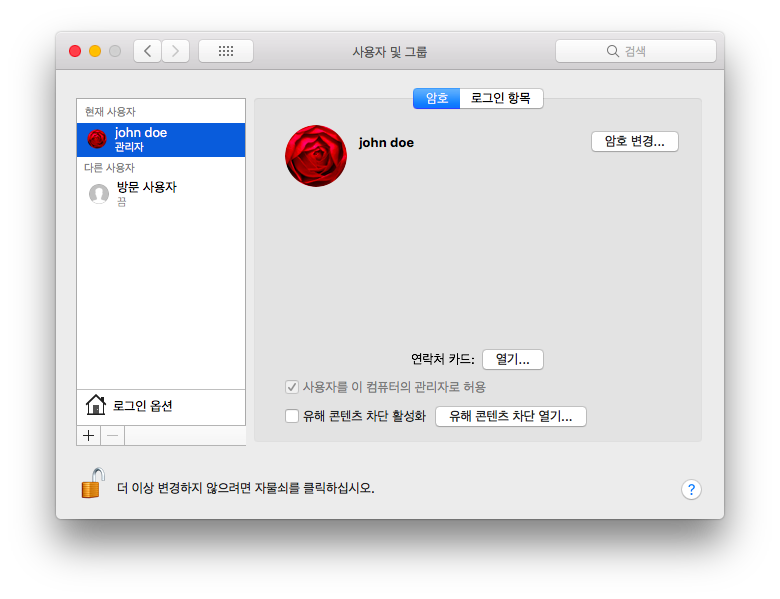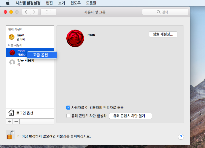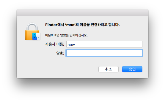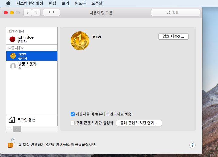 - macOS에서 사용자 이름을 변경했는데 이름은 바뀌지않고 관리자였던 기존 계정이 표준사용자로 바뀌는 이슈가 있었습니다.