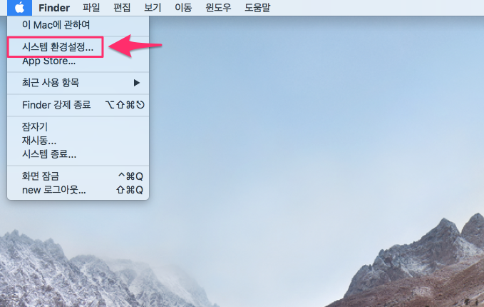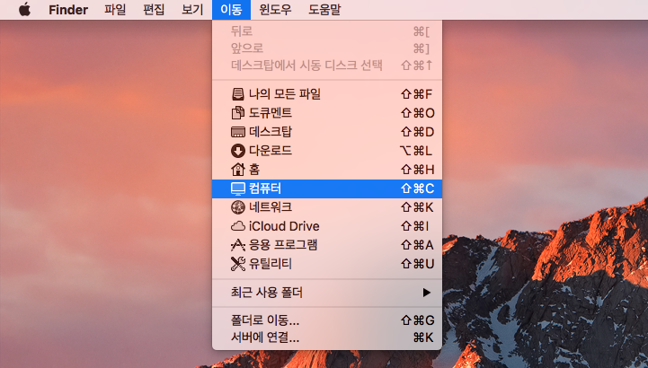 파인더 메뉴에서 [이동] -> [컴퓨터] 를 선택합니다.