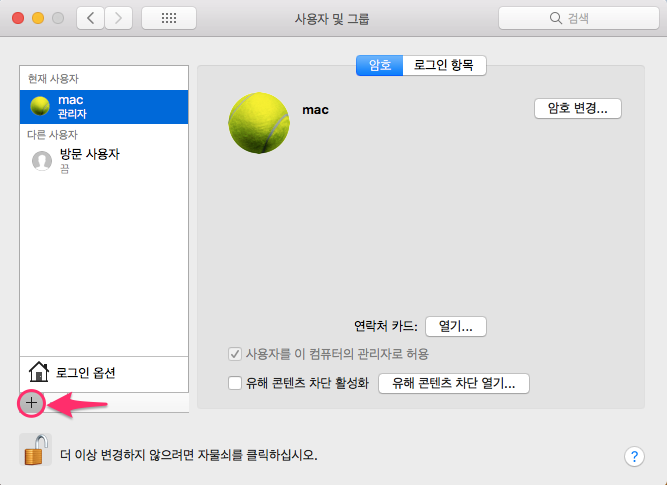 3. 좌측 하단의 + 버튼을 눌러, 계정을 추가합니다.