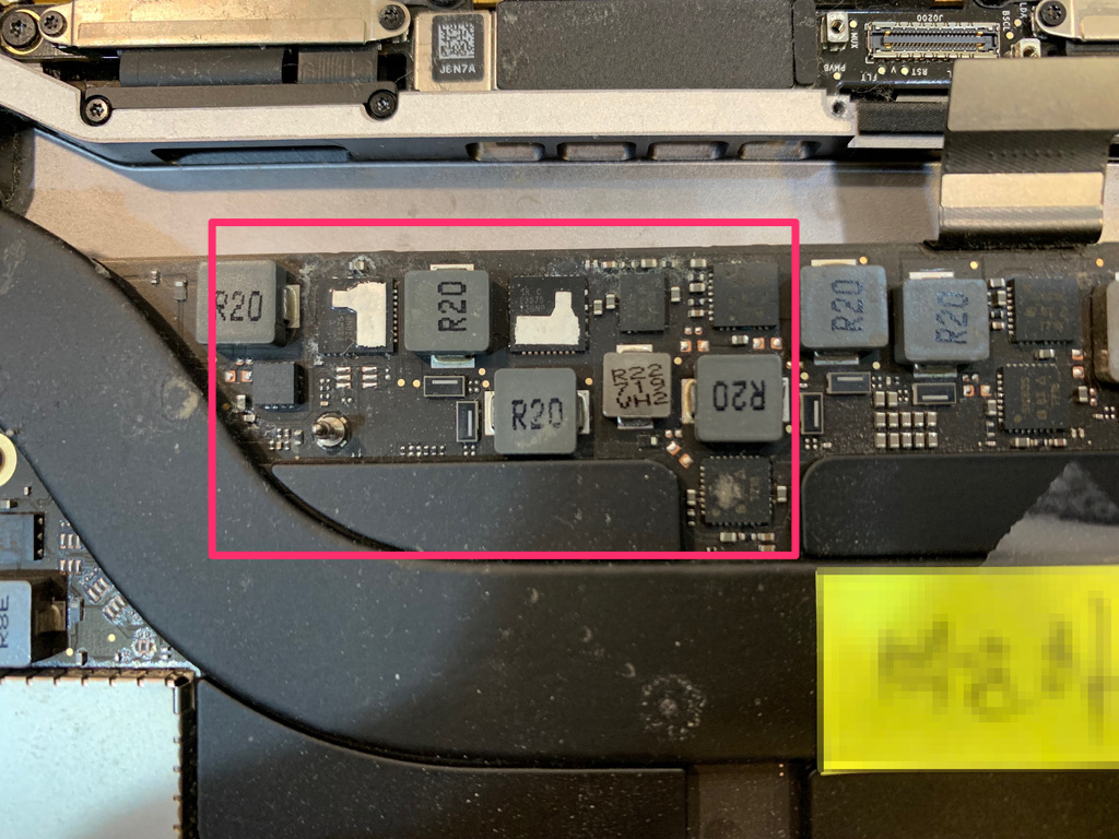 키보드에 머금고 있던 커피가 로직보드에 흘러 들어와 침수된 상황의 맥북 침수 수리 입니다.