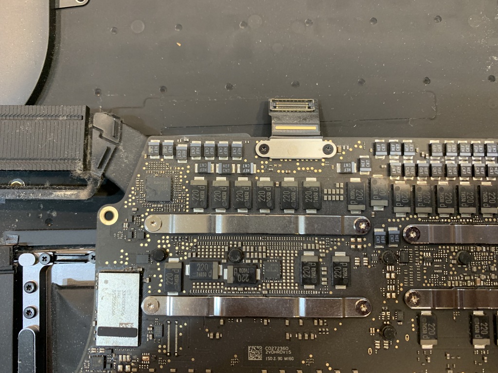키보드에 머금고 있던 커피가 로직보드에 흘러 들어와 침수된 상황의 맥북 침수 수리 입니다.