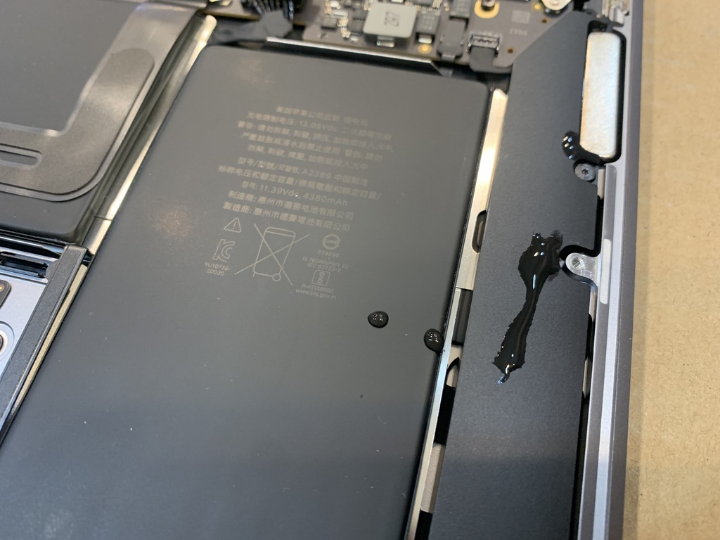 맥북 m1 신형기종을 가방에 넣은 상태에서 텀블러 뚜껑이 열려서 맥북 침수된 사례의 수리기를 알려드리려 합니다.